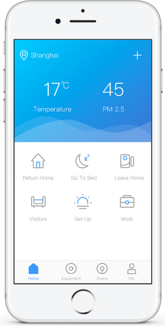 通过互联网、蓝牙等链接物联网设备,实现对智能锁、智能电器等智能设备的状态查询、调节与控制、权限管理与转让、密码更换等功能,通过手机完成对设备的控制